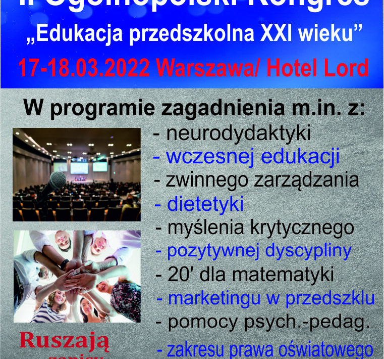 Ruszyły zapisy na II Ogólnopolski Kongres przedszkoli niepublicznych ! Aby się zapisać przejdź do zakładki KONGRESY lub kliknij w link https://ozpn.eu/kongresy/